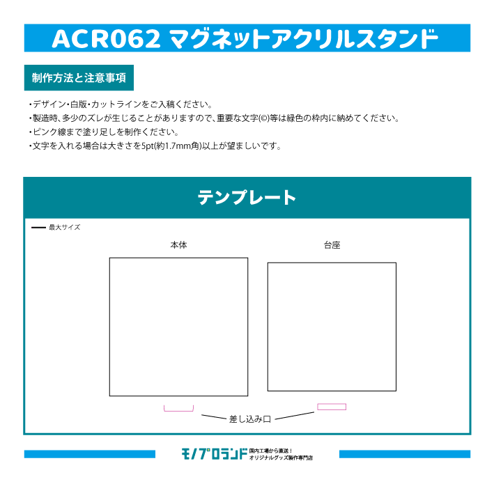 | 素材 | 本体:3mm厚アクリル マグネット:異方性マグネット |